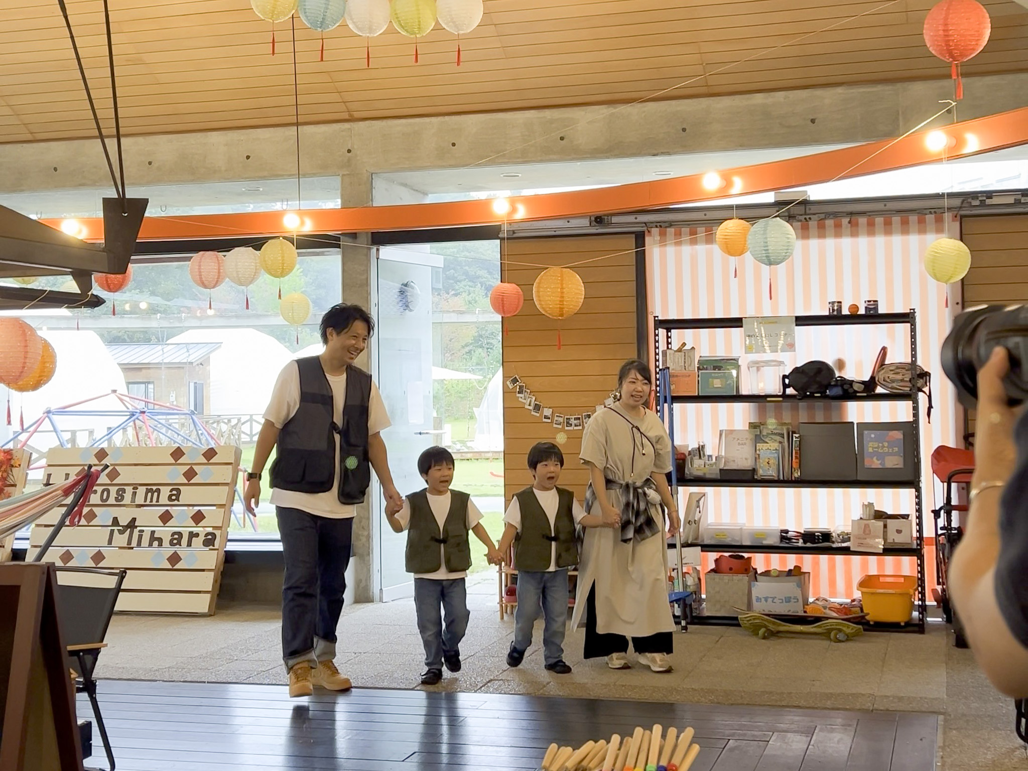 元気いっぱいの双子くんたちは、撮影現場をぱっと明るい雰囲気にしてくれるムードメーカー。また、取材には今回の記事作成を担当してくれるライターの端場愛さんも駆けつけ、撮影のサポートまでしてくれる心強い存在でした。ご夫婦の自然な笑顔と、お子さんたちのはしゃぐ姿が、施設の魅力をより一層引き立ててくれました。